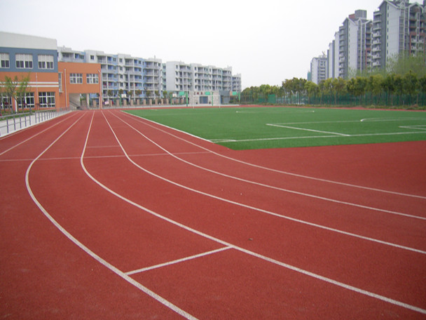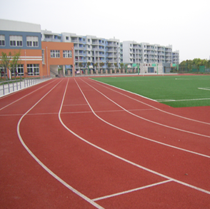 PU跑道、亚克力球场适用于田径场、网球场、篮球场、排球场、羽毛球场,产品特性:弹性适中、平坦耐用、耐磨性好、全天候性雨后即可使用,保养容易;施工程序:1.基面处理、2.底涂层、3.中涂层、4.面涂层、5.划线。